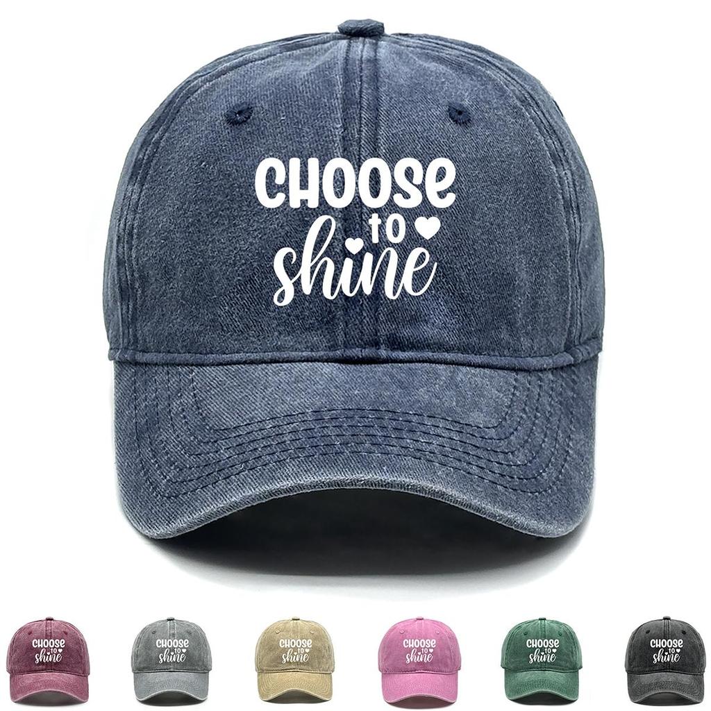Choose To Shine" Print Adjustable Baseball Hat, White Text Trucker Hat Inelastic Cozy Breathable Slouchy Snapback Baseball Cap