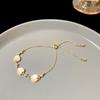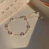 Korean Retro Pearl Titanium Steel Women's Bracelet - High-End Ins Style Beaded Bangle for Couples