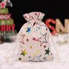 Christmas Gold Foil Cotton Linen Drawstring Gift Bag for Candy