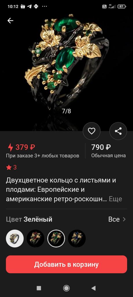 Two-Tone Leaf and Fruit Ring: European & American Retro Luxury Jewelry