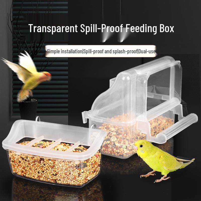 Transparent Anti-Spill Bird Feeder & Water Trough for Budgies and Lovebirds