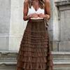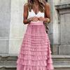 Elegant Boho High Waist Skirt for Women - Durable, Comfortable Fit with Chic Mesh Layer & Contrast Lace, Perfect for Spring/summer