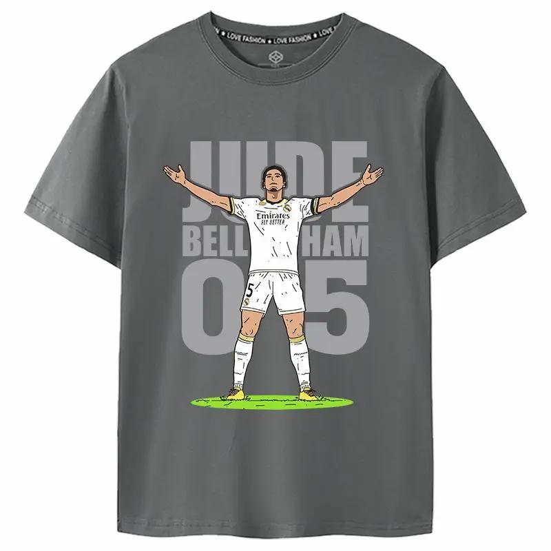 2024 Bellingham Celebrates Action LOGO Short Sleeve T-shirt for Real Madrid Fans Commemorating The Summer Crewneck England Team