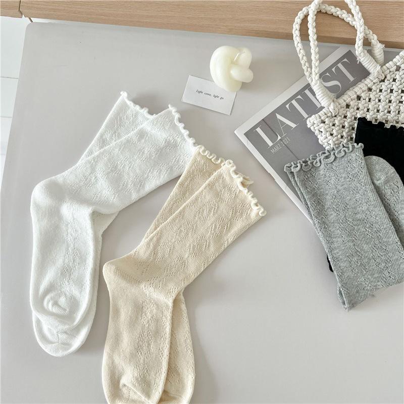Women's Mid-Calf Ruffle Mesh Socks - Japanese & Korean Style