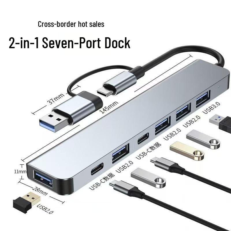 Dual-Head 7-in-1 USB 3.0 Multiport Type-C Hub Adapter