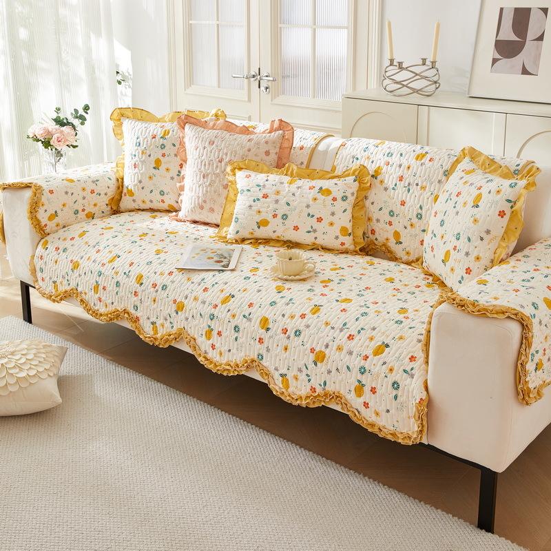 Cotton Sofa Cushion Universal In All Seasons, Pure Cotton Non-Slip Fabric Cushion, Simple Modern Floral Sofa Cover Cover Cloth Towel