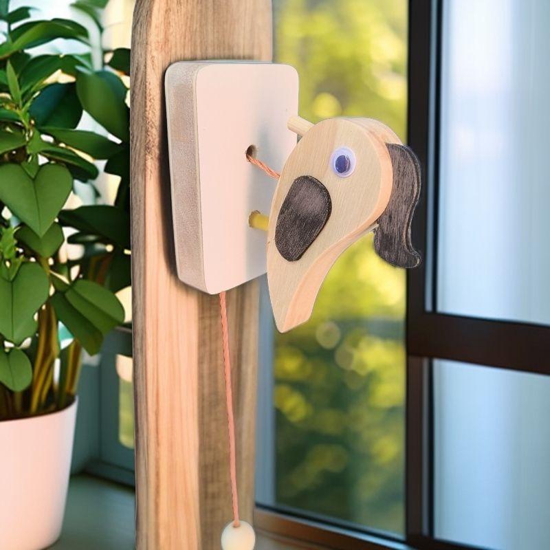 Woodpecker Knocking Doorbell Solid Wood Bird Hand Pulling Rope Ceremony Room Exquisite Ornament Decoration Crafts Home Decor