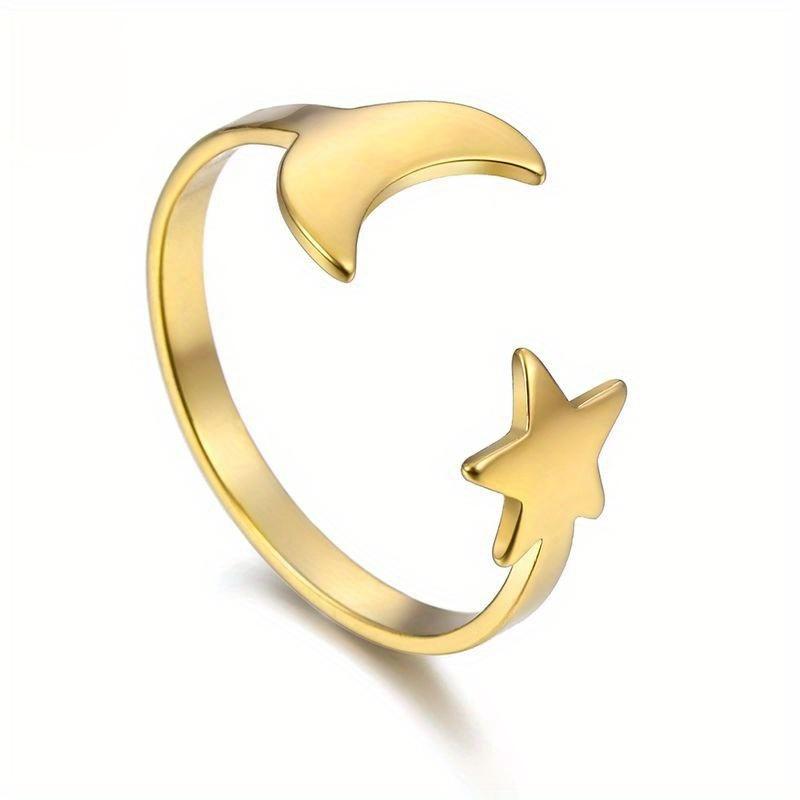 Creative and Minimalist Star and Moon Opening Ring, Fashionable Hollowed Out Design Handmade Accessory, Versatile and Personalized Ring Jewelry.