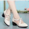 New Single Shoes Leather Medium Heel Thick Heel Summer Women's Fashion Mesh Yarn Medium 2 Shoes Soft Sole Non-slip