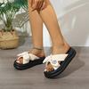 Fashion Summer Bow Knot Crystal Decor Slippers for Women Thick Sole Pu Leather Sandalias Woman 2025 Casual Lightweight Slippers Mujer
