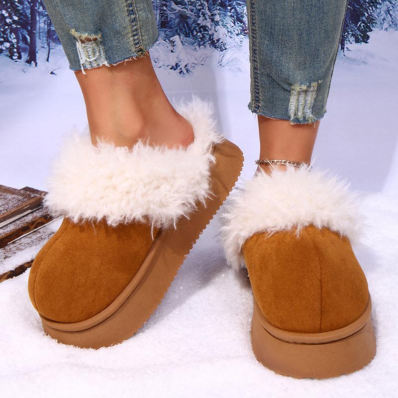 Fashion 2025 New Thick Sole Fluffy Slippers Women Outdoor Non Slip Warm Winter Slippers Woman Comfortable Slip On Cotton Shoes Female