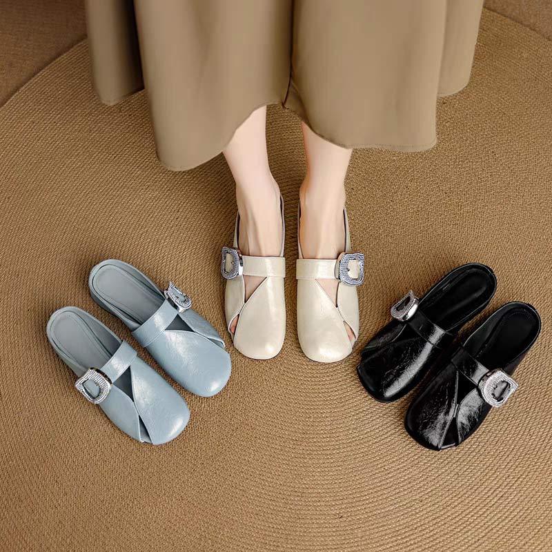 Fashion Round-toed Women's Shoes Baotou Thick Low-heeled Semi-slippers for Outer Wear Summer New Versatile Cool Mops