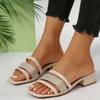 Fashion Fashion Square Toe Narrow Band Slip On Sandals Medium Heels Slides Women 2025 Summer Casual Hemp Strap Outdoor Slippers Size 42