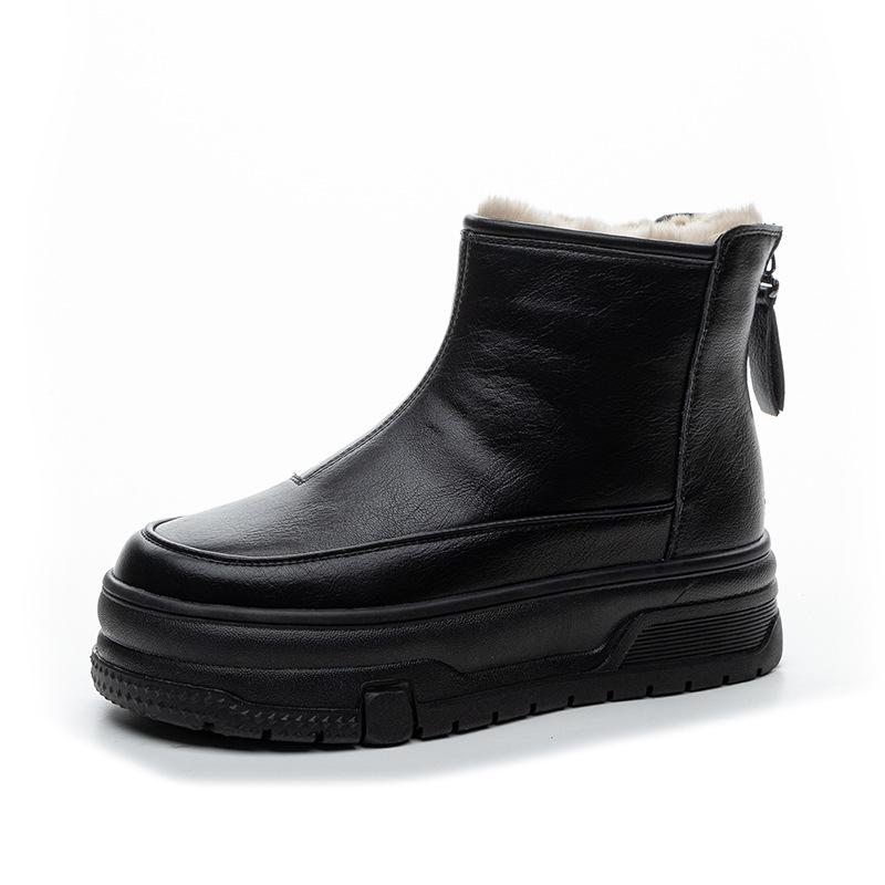 Fashion 5cm Ankle Boots Genuine Leather Spring Winter Plush Knee High Women Autumn Motorcycle Platform Wedge Fashion Shoes