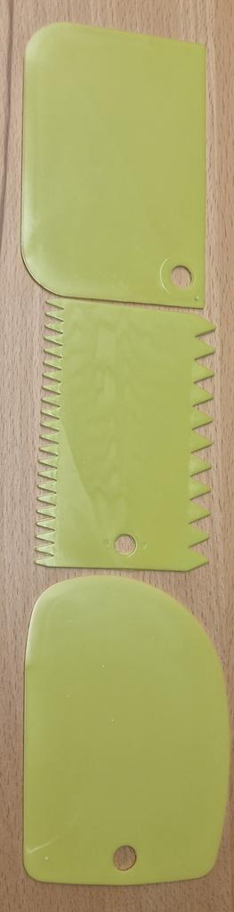 👩🍳 The three different dough spatulas in green color, which are available for purchase in 5 different colors, were delivered to me in Austria after 2.5 weeks of delivery, excellently packaged and consolidated. 👩🍳 The spatulas are made of plastic and serve as a helpful accessory in every kitchen. They are suitable both for freeing vessels from dough and for portioning dough more easily.. I am thrilled and the price-performance ratio is 🔝! Absolutely recommendable 👍! 🎶 Music from Capcut pro