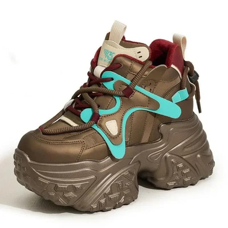 Fashion 9CM Microfiber Leather Women Chunky Sneakers Platform Wedge Loafer Flats Winter Autumn Warm Vulcanize Loafer Mixed Color Shoes