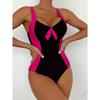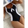 Women's Sexy Black & White Contrast Backless Triangle One-Piece Swimsuit - Removable Chest Pad, High-Elasticity Full Coverage Bathing Suit
