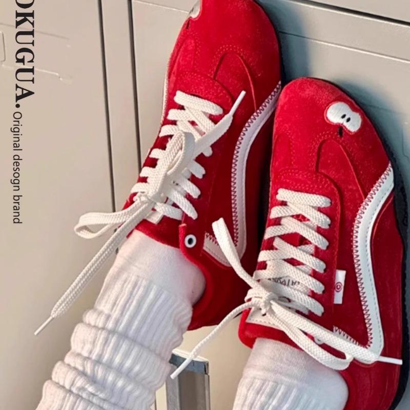 Red Women's New Spring and Summer Versatile Sports Casual Shoes Retro Racing Shoes Soft Soles