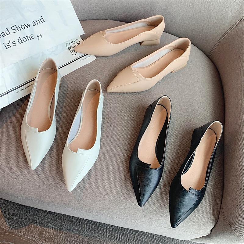 99-Pointed Leather Soft Sole Thick Heel Low Heel Shoes Women's Low Heel Two Wear Single Shoes Women's Fashion