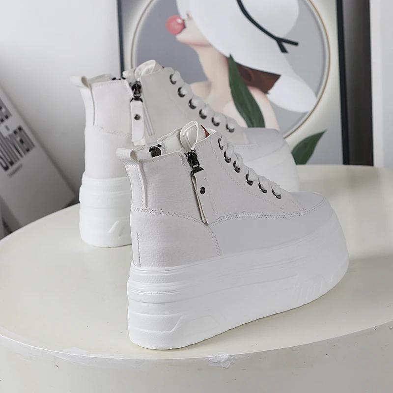 Fashion 12CM Genuine Leather PU Splice Spring Autumn Ankle Boots Women Platform Cushioned Wedge High Brand Chunky Sneakers Fashion Shoes