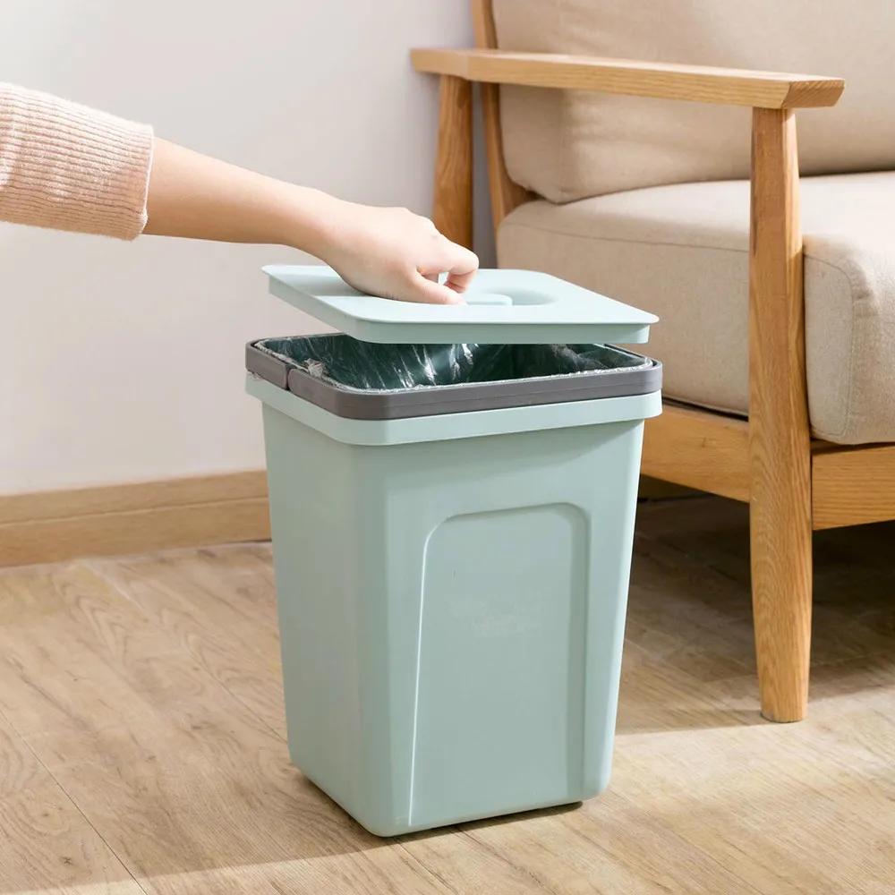 Thickened Large Plastic Trash Can - Square with Lid, Waterproof for Living Room, Bathroom & Kitchen Mx9171737