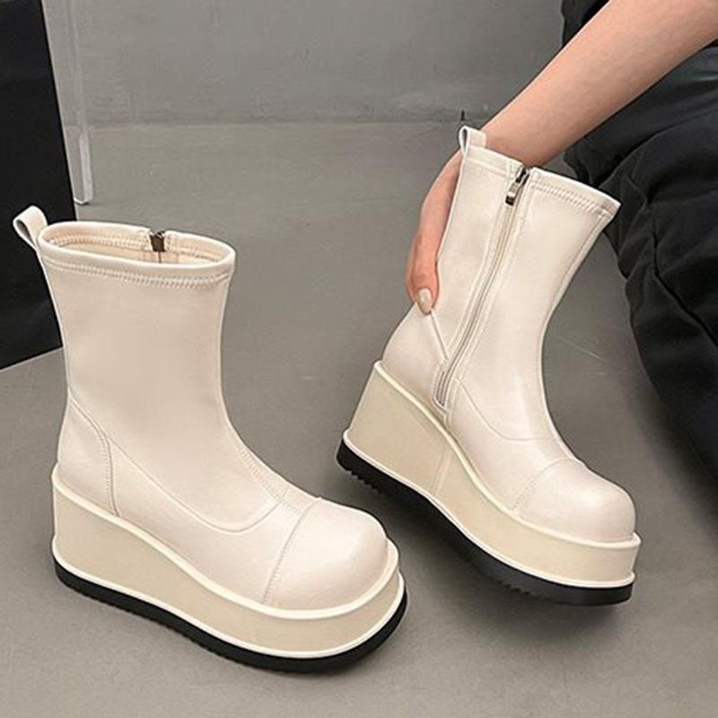 Fashion Women's Platform Ankle Boots Round Head Female Autumn Gothic High Heels Women's Short Boots Wedges Side Zipper Botines De Mujer