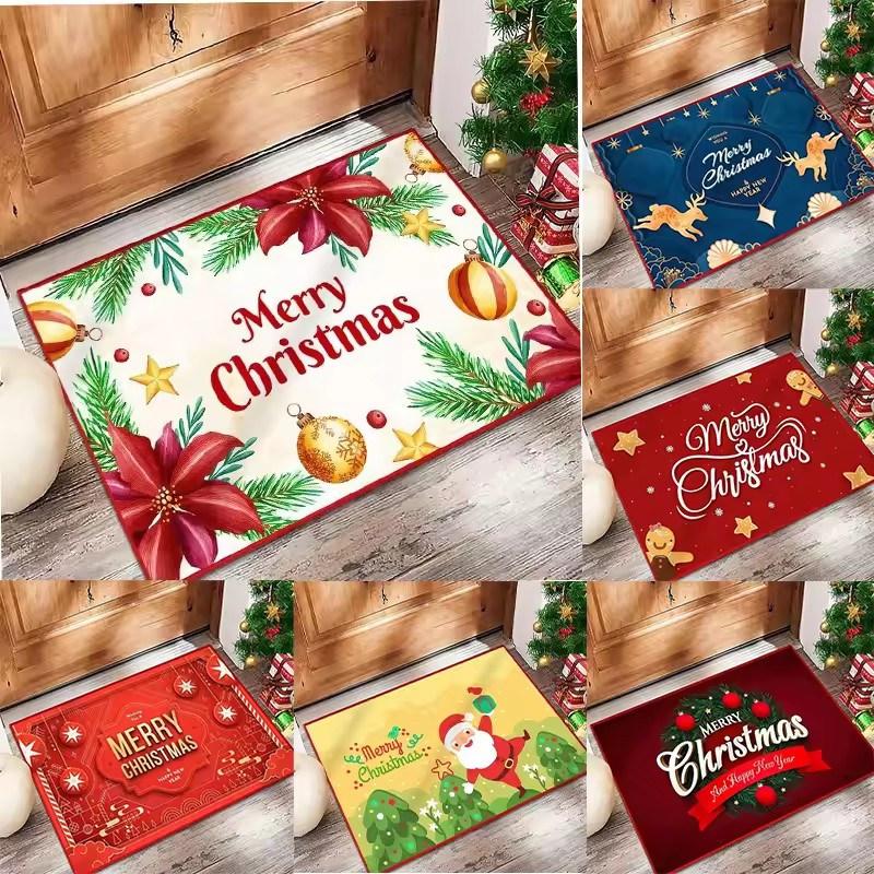 Christmas Themed Flannel Doormats Festive Santa Claus Poinsettia Prints Colorful Holiday Decor Soft Floor Mats for Home Entrance