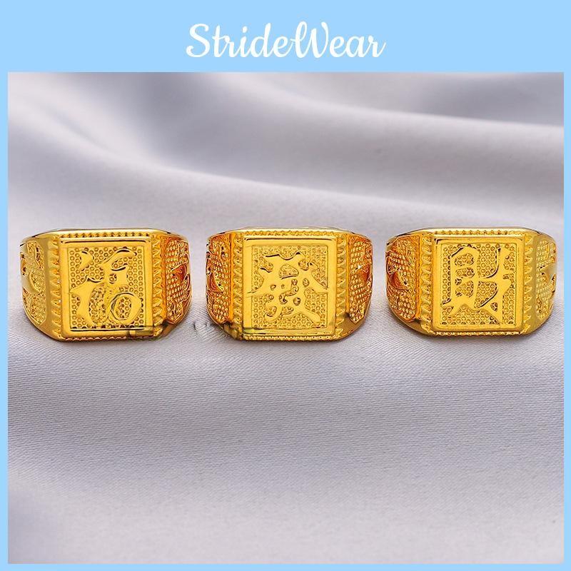 Unique Design: Featuring a geometric shape and adorned with Chinese characters symbolizing wealth and fortune, this ring stands out as a statement piece for any outfit.
