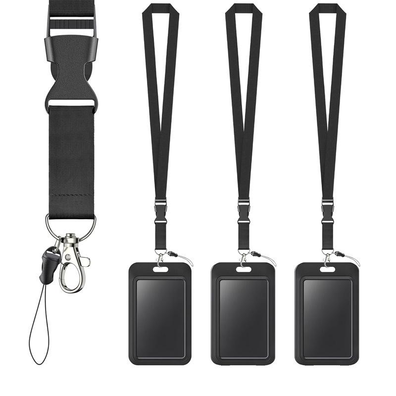 Black ABS Sliding Push-Pull ID Badge Holder with Clip and Phone Lanyard