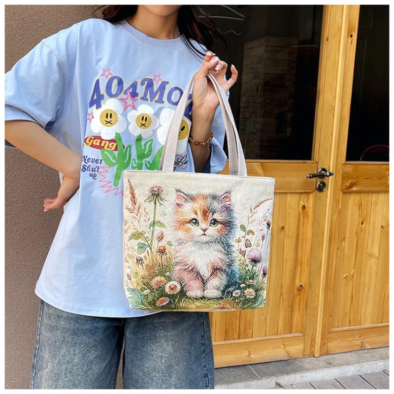 New Art and Art Student Canvas Bag Cartoon Harajuku Peripheral Large Capacity Portable Shopping Bag Cute Girl Shoulder Bag