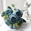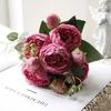 30cm Rose Pink Silk Peony Artificial Flowers Bouquet 5 Big Head and 4 Bud Cheap Fake Flowers for Home Wedding Decoration Indoor