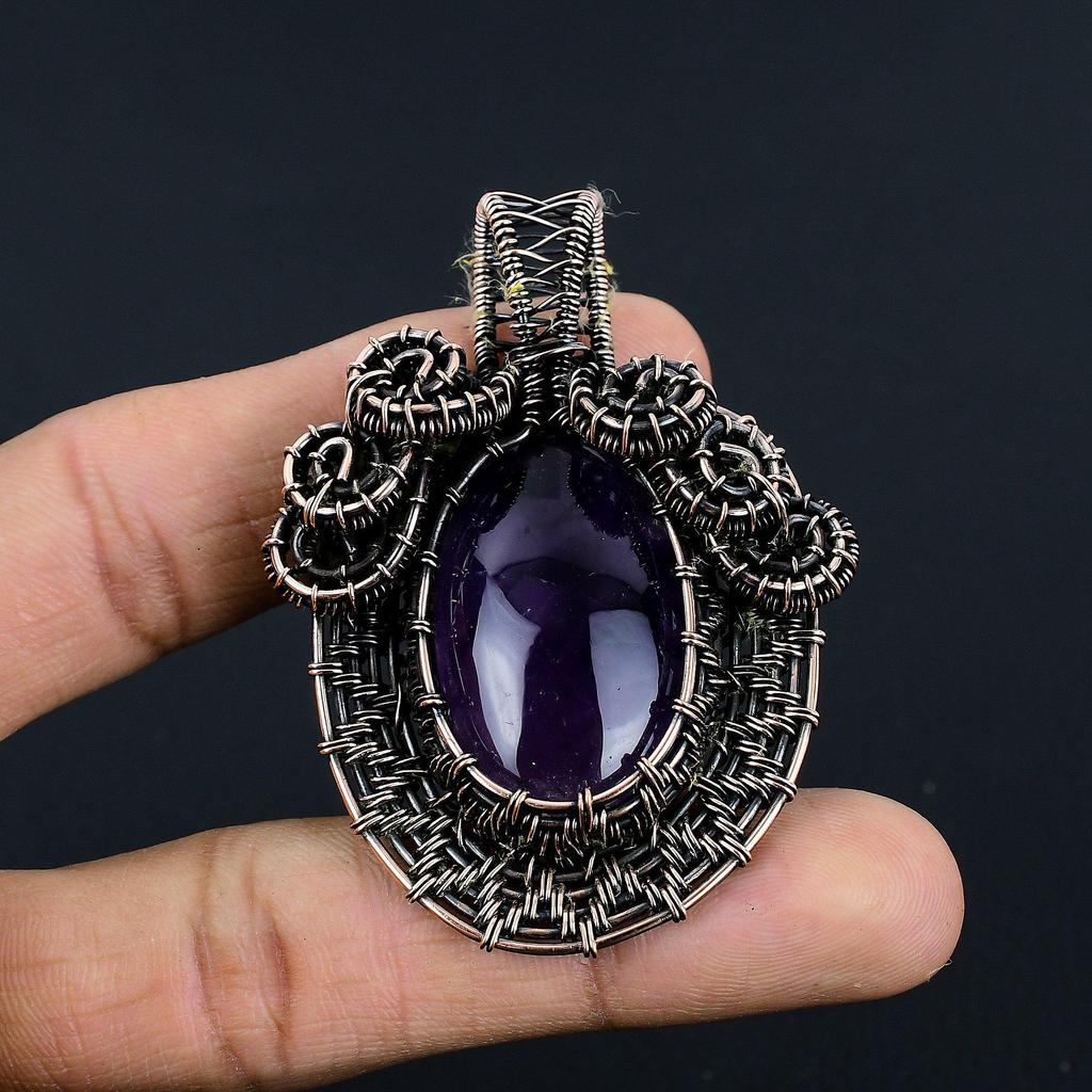 Amethyst Pendant Gemstone Jewelry, 999 Copper Wire Wrapped Pendant, Gift For Women Handmade Pendant