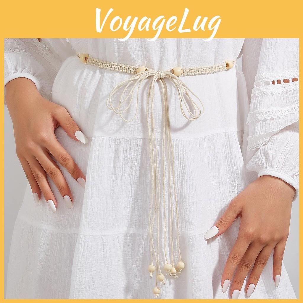 This bohemian belt features a woven wax cord design with wooden bead accents, offering a delicate and natural aesthetic. Made from breathable cotton-linen blend. Ideal for accessorizing summer dresses or casual outfits. Wipe clean with a damp cloth for maintenance.