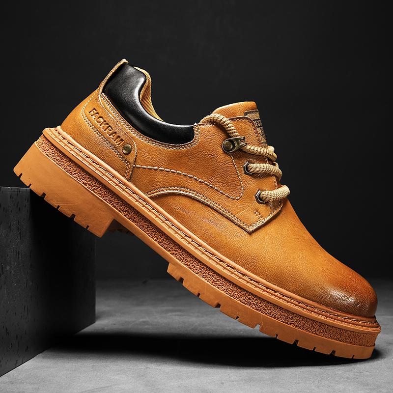 Fashion Men Casual Leather Shoes Luxury Brand Thick Bottom Lace Up Business Shoes British Style Outsole Casual Work Outdoor Boots