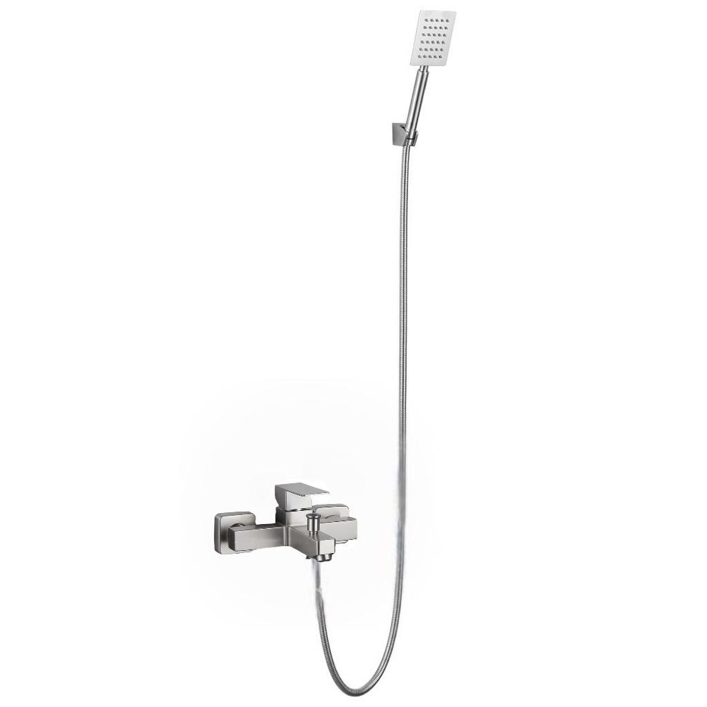 304 Stainless Steel Square Bathroom Shower Set Nickel Hand Hand Shower Head Hot And Cold Water Valve Faucet Bathtub Faucet Set