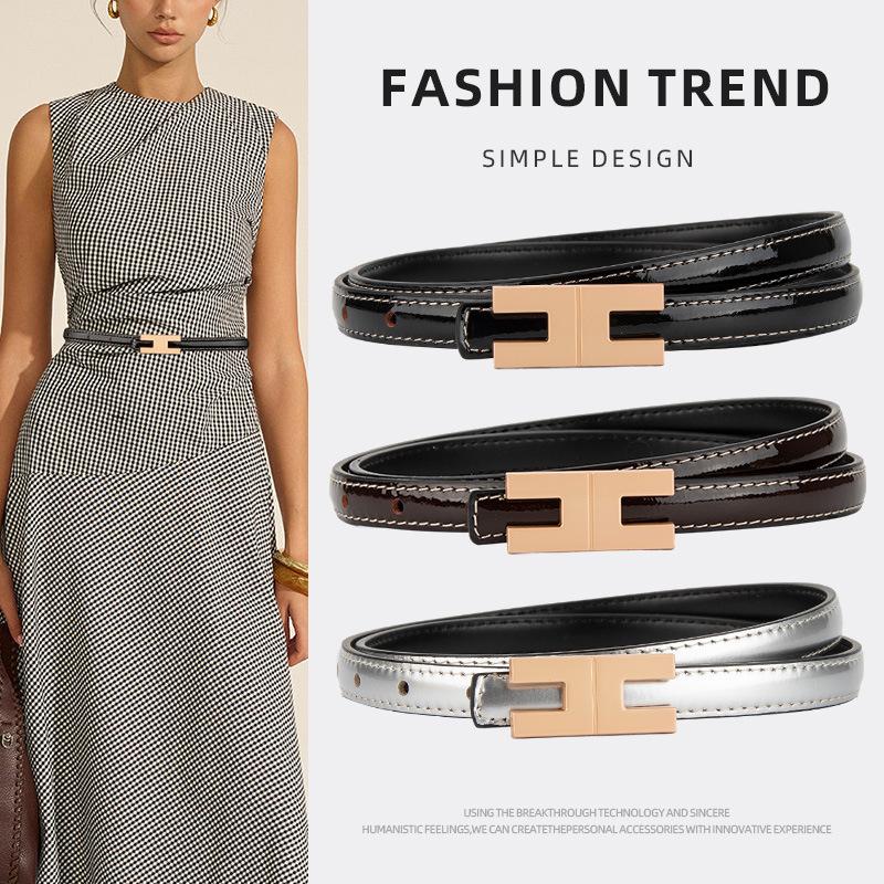 Fashion Decoration for Women's Lacquered Leather Belt Head Layer Cowhide High-end Feeling with Dress Buckle Removable Belt for Women