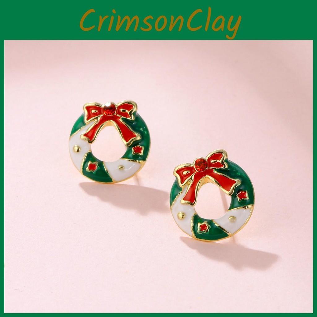 Elevate your holiday ensemble with our exquisite collection of Christmas-themed earrings, a must-have for the festive season. These trendy and whimsical ear studs feature designs inspired by the joyous spirit of Christmas, including charming reindeer, elegant Christmas trees, and delightful wreaths. Meticulously crafted with an alloy material and treated with an enamel drop technique, these earrings boast a glossy finish that will add a touch of sparkle to any outfit. Available in a variety of vibrant colors such as white, green, black, and red, there's a perfect pair to suit every taste and style.