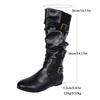 Fashion Pleated Design Flat Knee High Boots Women Retro Brown PU Leather Western Boots Woman Buckle Strap Decor Zipper Long Botas Mujer