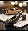 Fashion Women's Mid-heel 5.5CM 2024 Summer French Style Back Empty Female Thick Heel Square Toe Shoes Black Green