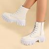 Fashion Chunky Platform White Ankle Boots Women Autumn Winter Pu Leather Booties Mujer Punk Thick Bottom Motorcycle Boots Size 35-43