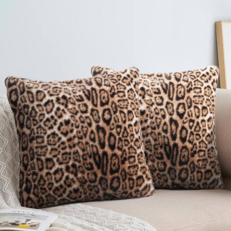 1pcs Beige Brown Leopard Print Polyester Pillow Cover Retro Cushion Case for Living Room Sofa Bed Backrest Decor Only Pillowcase