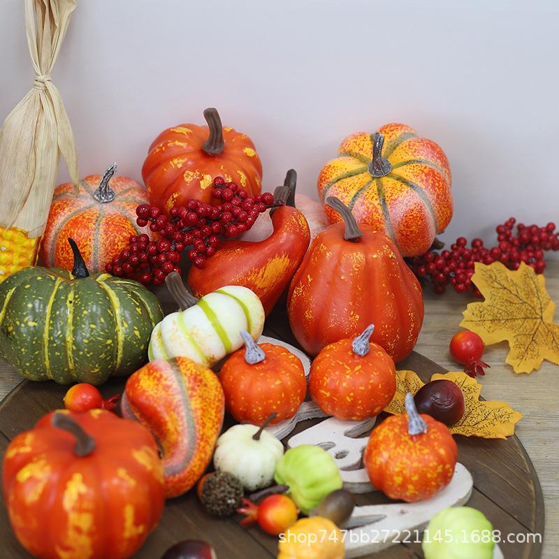 12pcs/set Halloween Foam Decor Set Simulated Small Pumpkin Maple Leaf Pinecone for Party Props Photo Shooting Home Decoration