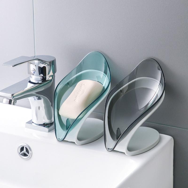 Bathroom Soap Holder Leaf Shape Dish Soap Kitchen Sponge Soap Box Storage Non-slip Drain Soap Case Container Bathroom Accessorie