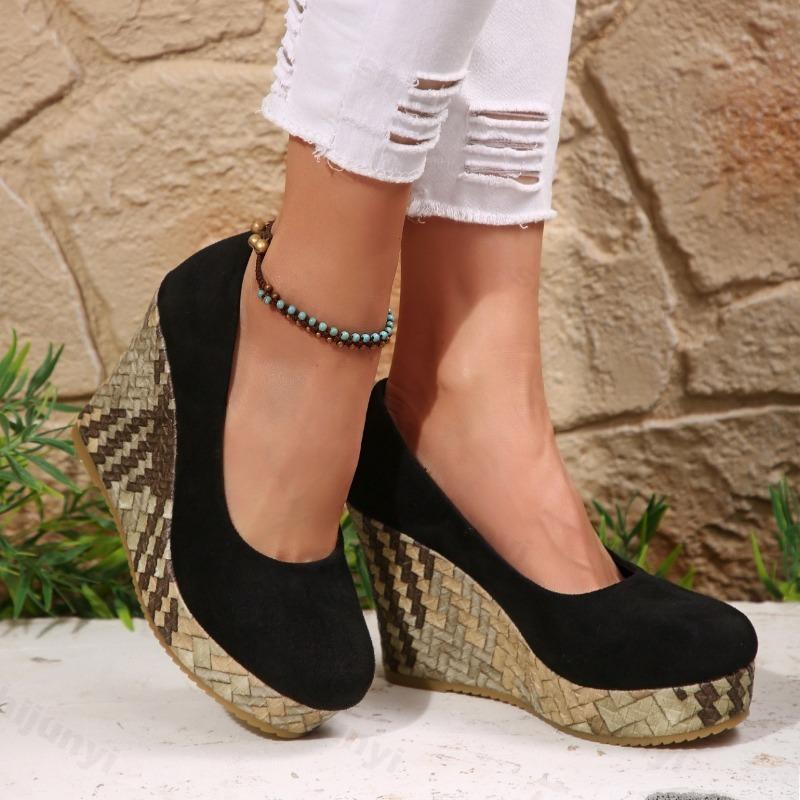 Fashion Women's Pumps Spring Autumn New Large Size Slip On Platform Wedge Shoes Comfortable Height Increase Non Slip Casual Single Shoes