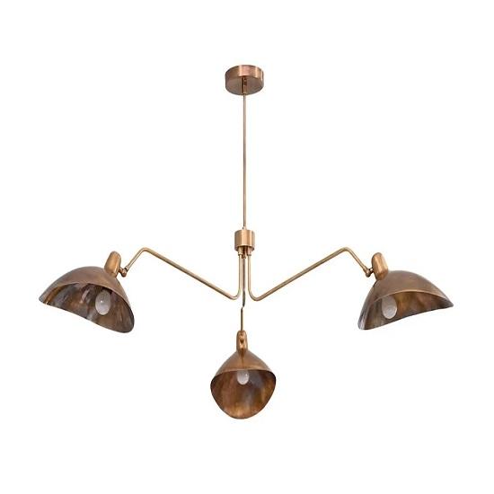 Ensure ceiling mount is sturdy and properly anchored — with three arms and brass, weight could be moderate.