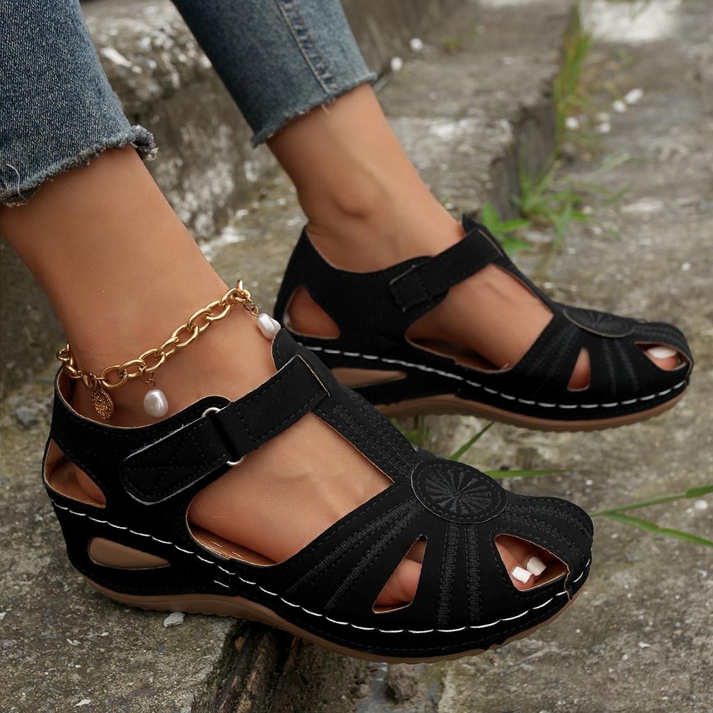 Fashion Summer Women's Closed Toe Wedge Sandals New Plus Size Female Beach Shoes Outdoor Roman T-strap Casual Sandals for Women