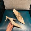Fashion 2025 Summer New Baotou Half Slippers Women Fine With Pointy Head Rhinobarrhinos All Wear Network Red Tide High Heels