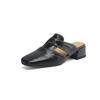 Fashion NEW Summer Women Mules Genuine Leather Shoes for Women Cover Toe Chunky Heel Slippers Pointed Toe Slingback Flower Black Sandals