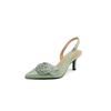 Fashion Elegant Woman Sandals High Heel Genuine Leather Pointed Toe Footwear 2025 Summer Slingback Fashion Dress Ladies Women Shoes
