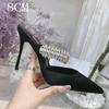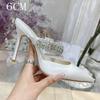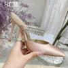 Fashion 2cm/6cm/8cm/10cm Pointy Fine Heels Rhine-diamond Chain Satin High Heels Mullers Wedding Shoes Bridesmaid Heels